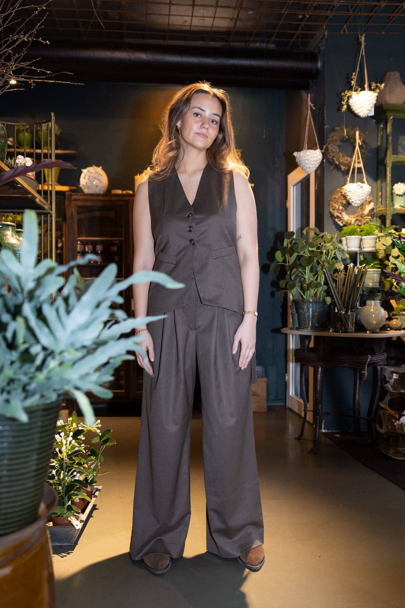 Crafted from premium wool, these brown trousers embody understated elegance and enduring style. Their versatile neutral tone seamlessly transitions from casual to formal settings, whether styled solo or paired with a matching waistcoat for a refined ensemble. The quality construction ensures lasting comfort and a polished appearance that transcends seasonal trends, making them an essential foundation piece for any discerning wardrobe.